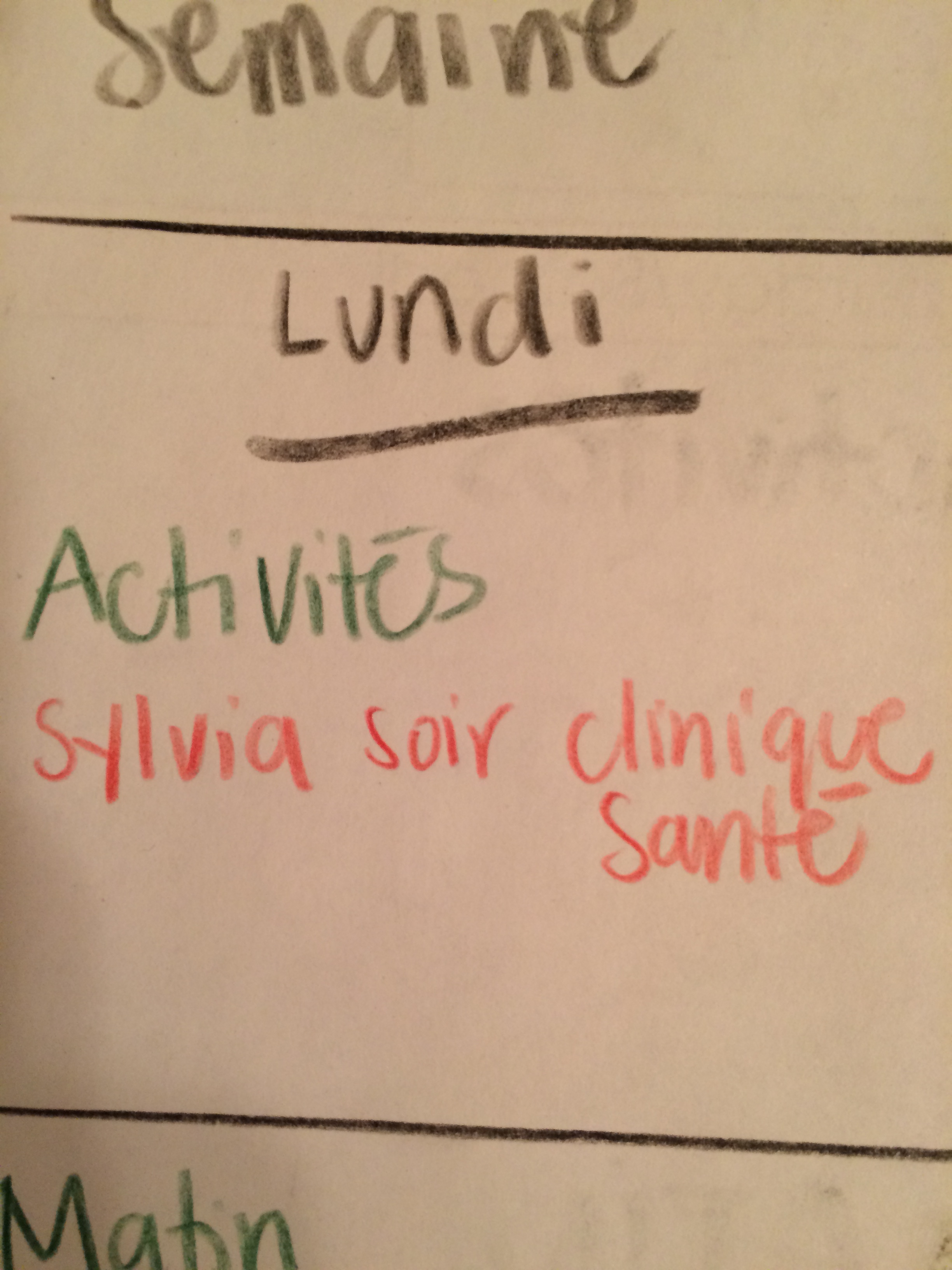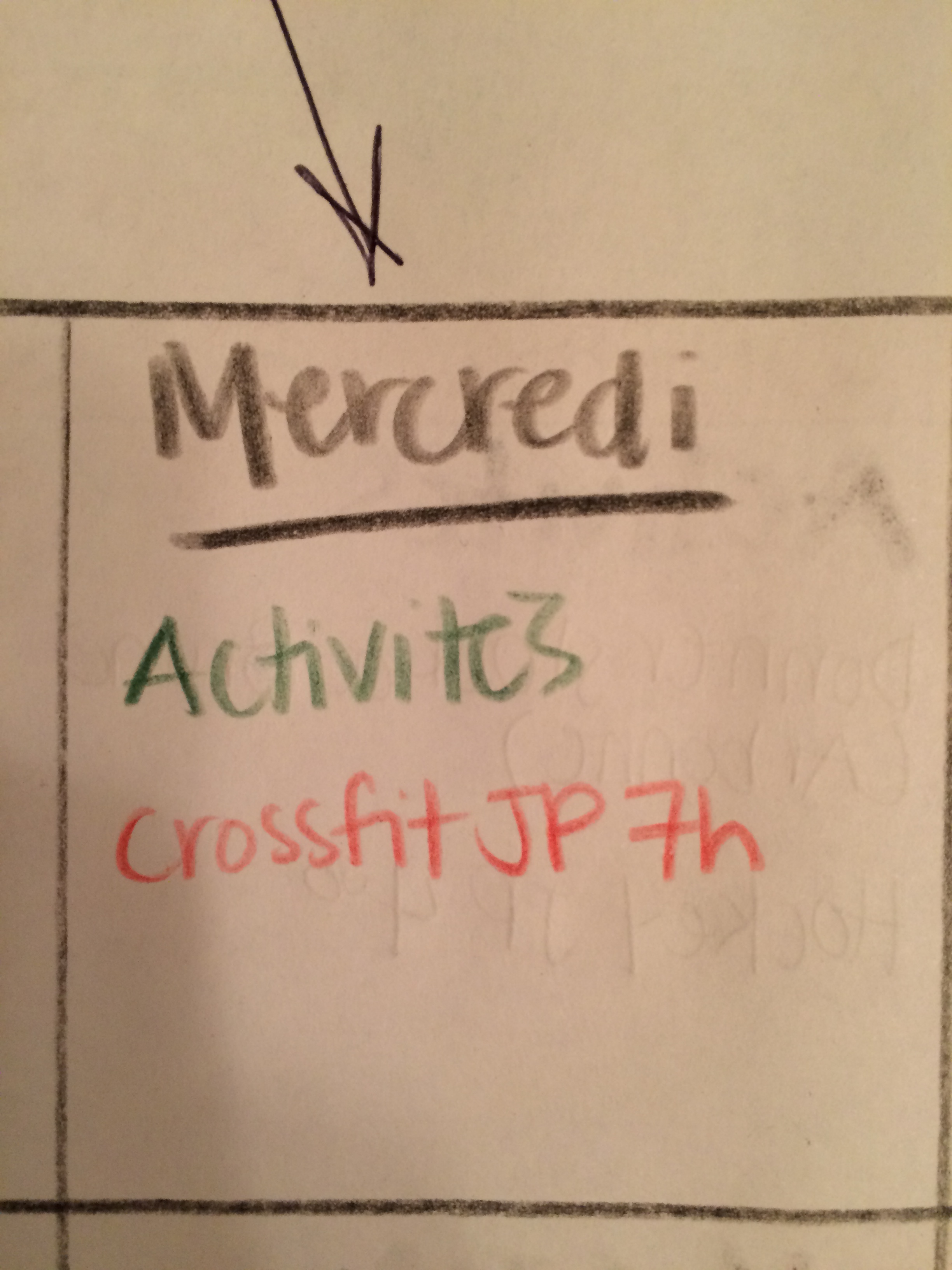 La première chose que j’indique, dans mon tableau, ce sont les activités du jour pour chaque jour de la semaine :
