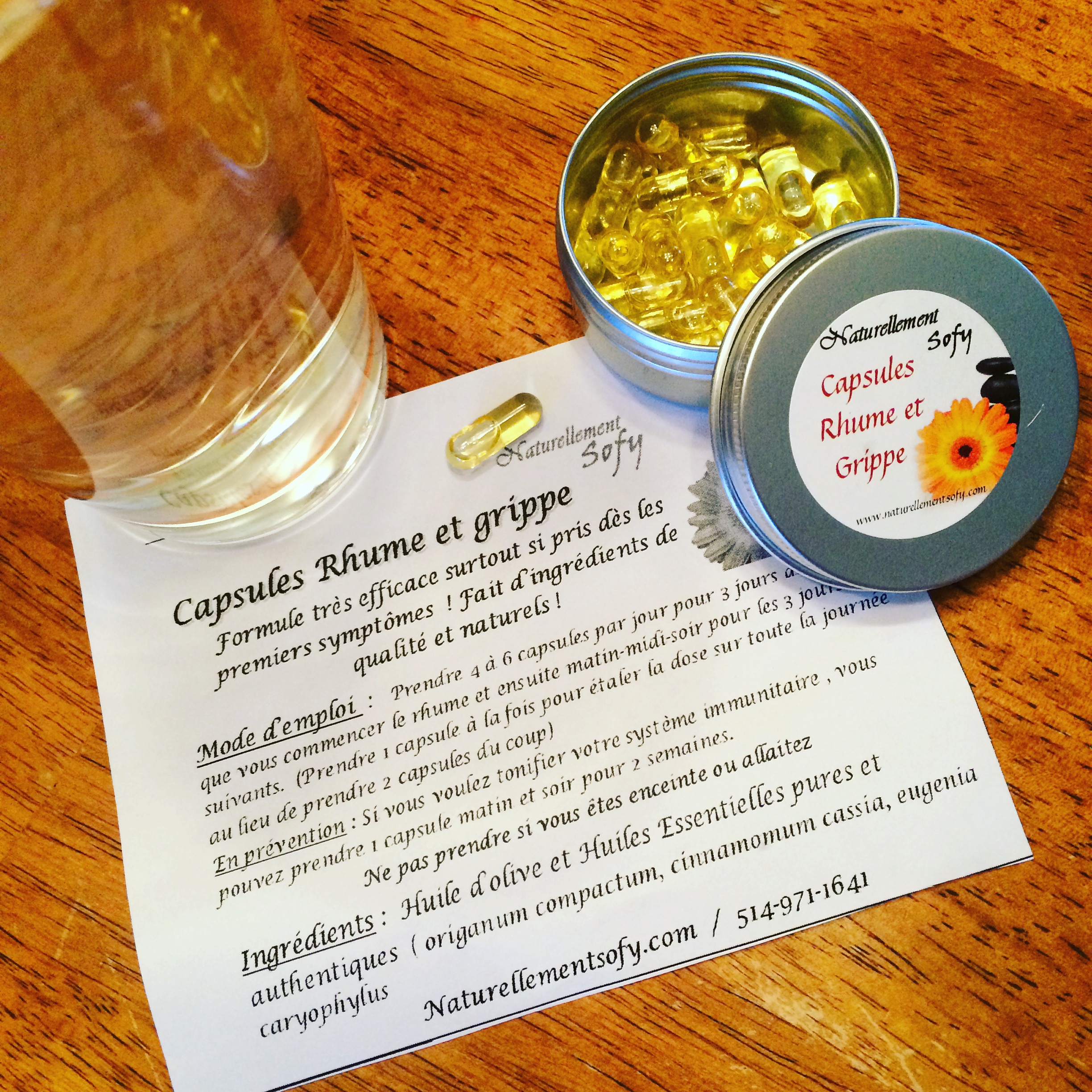 Le destin a voulu que je te pogne un de ces rhume pas longtemps après avoir reçu les capsules … Et j’ai survécu ! Je ne suis pas très, très médicaments … Alors, habituellement, je règle ça, du mieux que je peux, avec beaucoup d’eau et ben du miel et de l’ail (et que je n’entende personne me dire que ça prend du sommeil et du repos : je suis maman à la maison et j’ai 3 enfants … ! Je me souviens vaguement m’être reposée et avoir dormi une nuit complète). Ça dure alors environ 7 jours. Avec la prise des capsules Rhume et Grippe : 2 jours ! C’est mon coup de coeur !