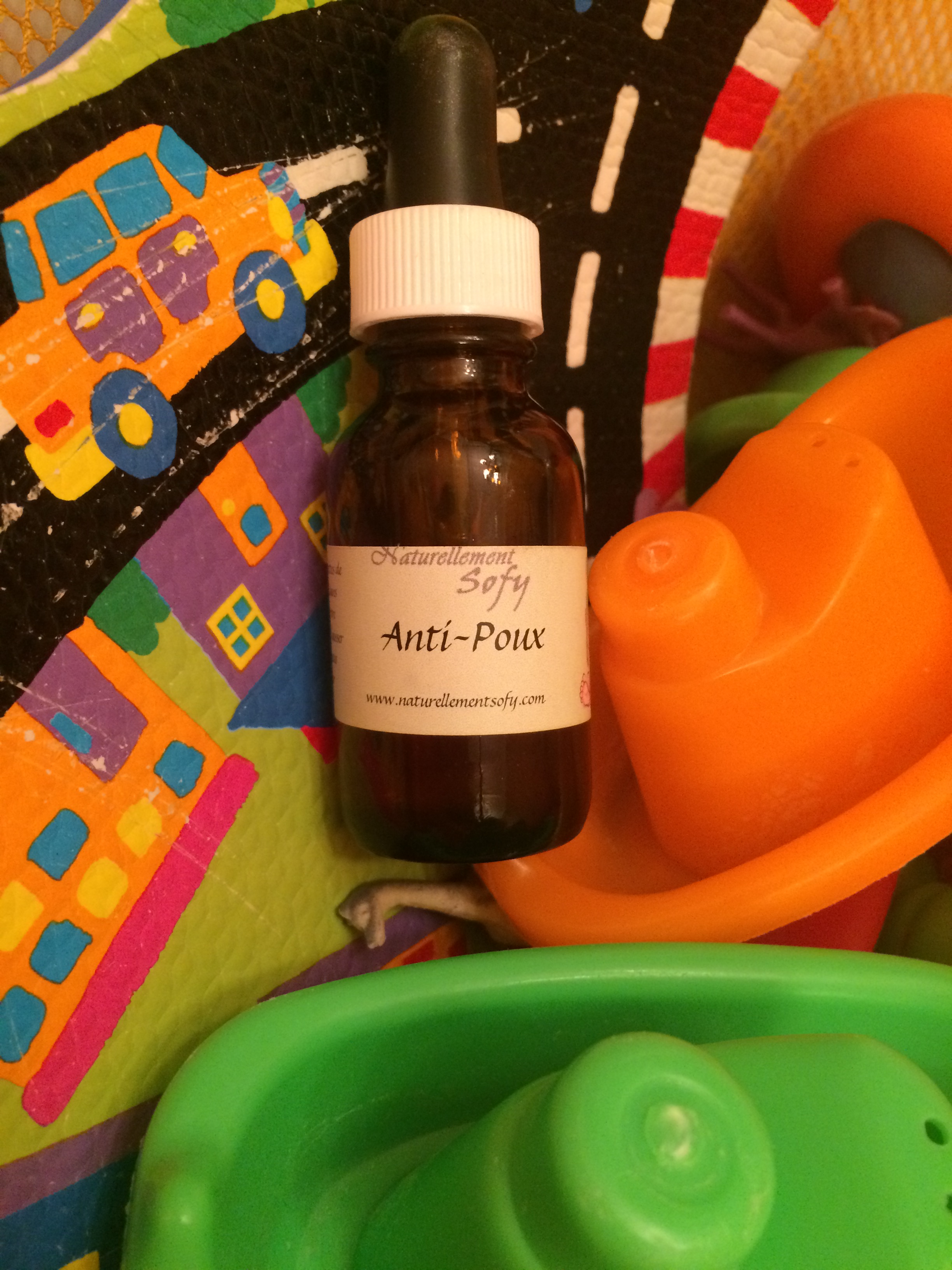 Savante concoction que l’on peut utiliser en traitement ou en prévention. Je touche du bois : personne n’a eu de poux chez moi à ce jour ! Je l’utilise donc en gouttes sur la nuque et autour des oreilles ainsi qu’en shampooing à titre préventif. Non merci les poux !!!