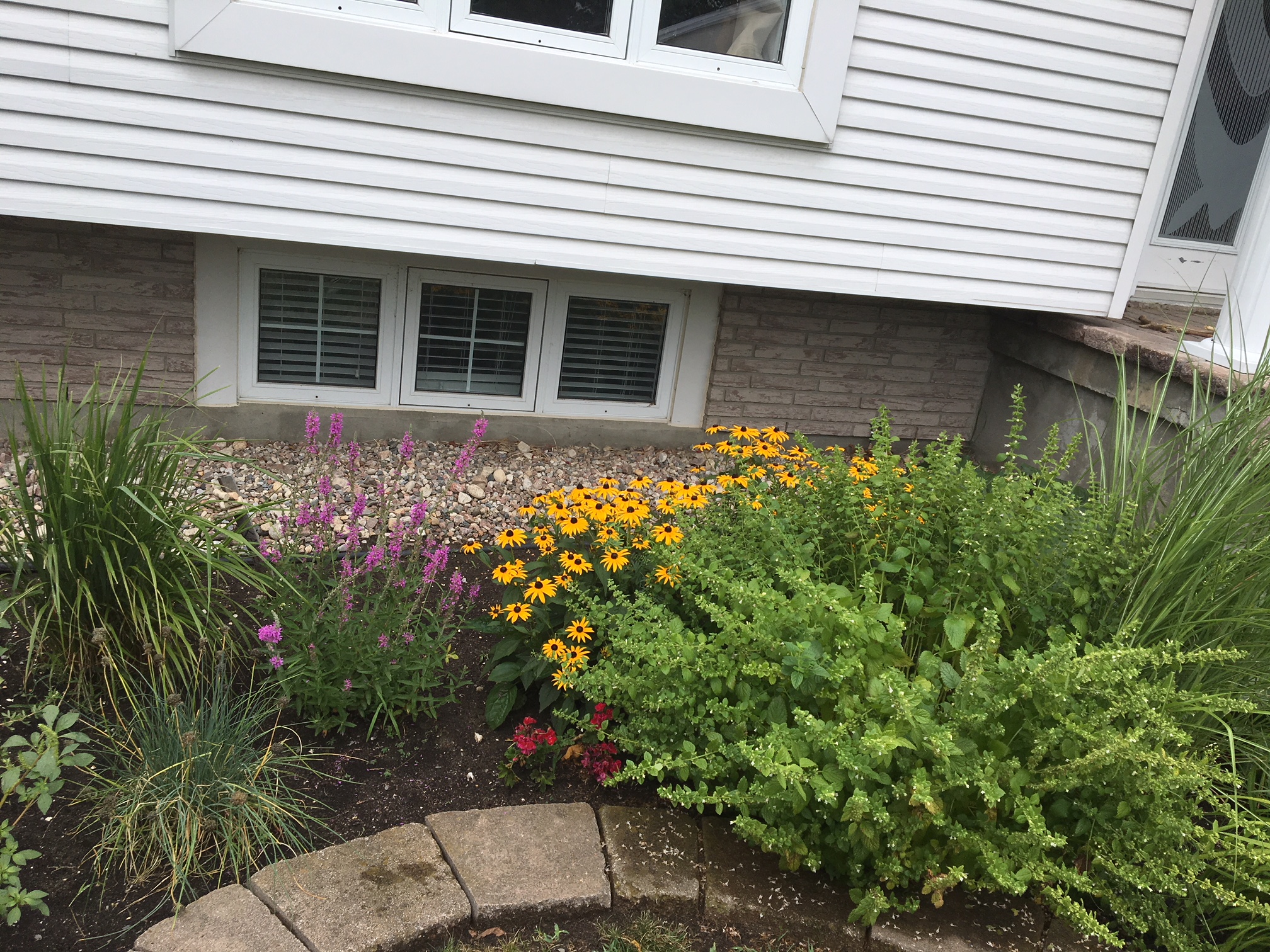 Alors si tu pouvais venir fouiner à l’avant de ma maison, tu pourrais trouver aneth et bleuets qui chill avec des graminés.
