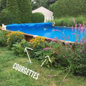 J’ai aussi opté pour un mélange de fleurs sauvages pour abeilles butineuses dans mes bacs à fleurs près de la piscine afin de leur offrir un bon repas et de leur permettre de m’assurer d’avoir de jolis fruits et légumes en quantité.