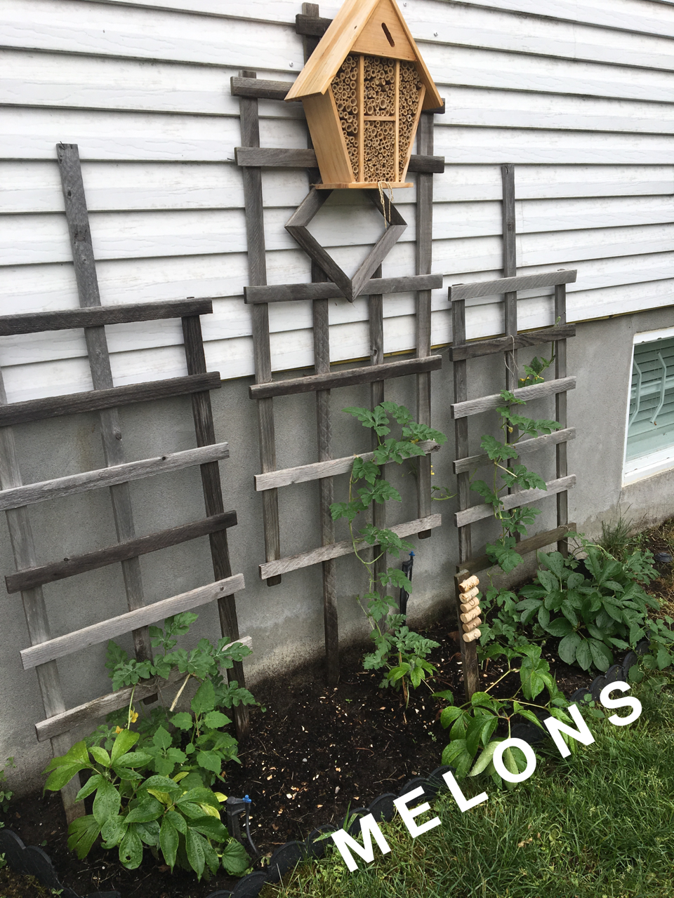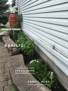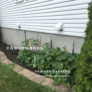 Sur chacun des flancs de la maison, on peut trouver concombres, tomates cerises et italiennes ainsi que toutes mes fines herbes et un plant de jalapeno !